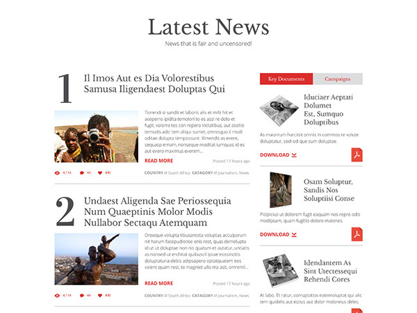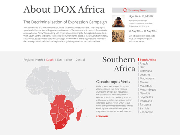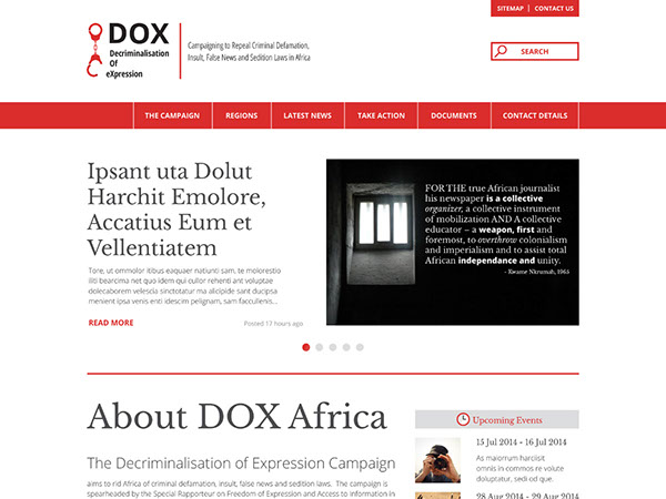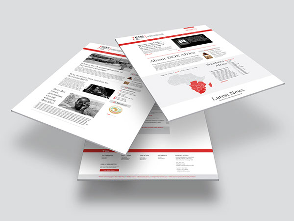 A redesign of the Dox Africa Website in a journalistic, newspaper style look & feel.