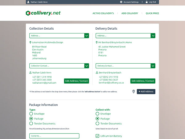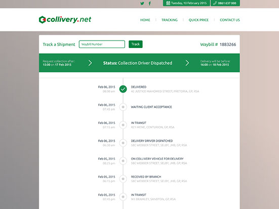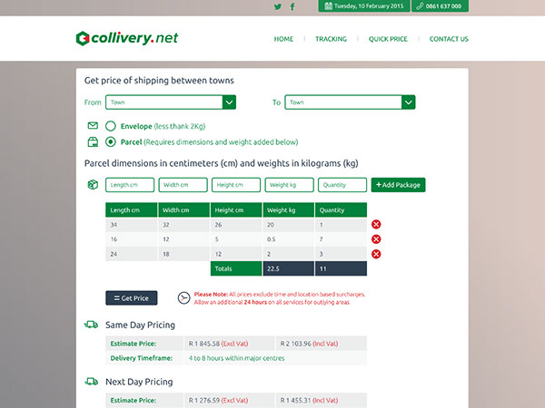 The user experience was taken into great consideration and the website displays relevant information and tools to aid the client with booking and tracking their collections and deliveries.