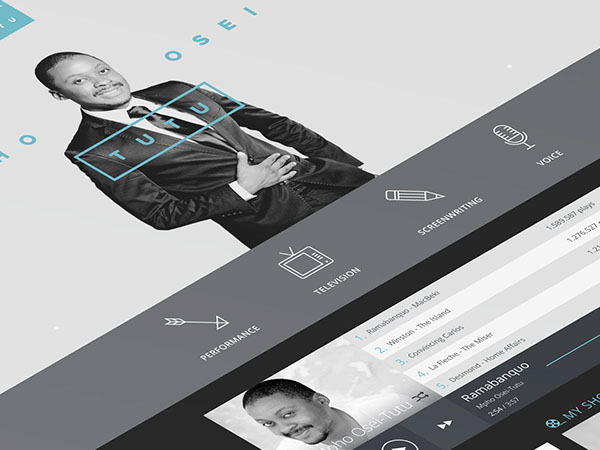 Design a portfolio website for South African award winning writer, director, producer, comedian, freelance actor, screenwriter & voice artist; Mpho Osei-Tutu
