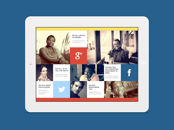 This website design puts emphasis on the written (typed) word and social media.